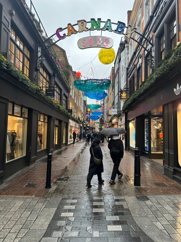 One of the best things to do for Christmas in London is to walk the popular “Christmas streets”. I call them Christmas streets because of how the entire street gets decked out in the festive season. The 3 that I always go back to are Carnaby, Elizabeth street in Belgravia and of course, New Bond street. Carnaby Street always has a theme that is as playful as it is ethical. One year, it was something to do with saving the ocean “project Zero” and it changes every year.